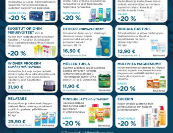 Tarjoamme sinulle tuotteita myös kauneudenhoitoon ja hyvinvoinnin edistämiseen. Apteekki on helposti saavutettavissa ja esteetön asioida. Kun saman katon alta löytyvät Suomen suurin S-market, Alko ja apteekki, hoidat monta asiaa samalla käynnillä. Pihalla on runsaasti ilmaista paikoitustilaa. Hyödynnä kuukauden tuotetarjoukset ja liity myös kanta-asiakkaaksemme. Kanta-asiakasalennus on ostoetu, jota kerrytät keskittämällä asiointisi meille.